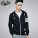 潮牌开衫卫衣男士连帽条纹印花外套青少年学生纯色拉链运动帽衫男