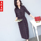 女装连衣裙2017春装新款印花长袖棉绸打底裙小碎花过膝长款连衣裙
