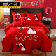 磨毛四件套纯棉1.8m床上用品2.0 全棉加厚婚庆四件套大红1.5被套