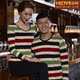 喜姿婷彩条情侣内衣套装中厚秋衣秋裤女13269 舒绒全棉男士13369