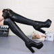 2017秋冬季女士过膝长靴超高跟鞋长筒皮靴粗跟高筒马靴子新款加绒