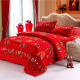 大红喜庆结婚庆全棉床上用品磨毛纯棉荷叶边床品四件套百子图