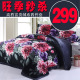 加厚超重保暖布长毛绒布柔软床上用品珊瑚绒四件套 黑色深色牡丹