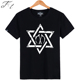 欧美风潮牌街头六芒星魔法阵男士黑色短袖T恤圆领纯棉大码打底衫