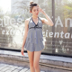 连体泳衣女裙式平角系带性感露背聚拢条纹少女显瘦泡温泉泳装批发