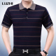中年男士夏季短袖t恤爸爸装翻领体桖中老年条纹针织衫宽松大码T恤