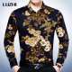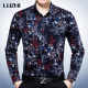 秋季潮流中年男士长袖衬衫新款韩版时尚印花棉衬衣休闲男装花衬衫
