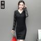 卡欣秋冬新款加绒加厚长袖连衣裙春装中裙包臀一步裙中长款蕾丝衫