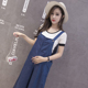 夏季孕妇牛仔裤七分裤宽松孕妇阔腿裤韩版连体背带裤直筒托腹裤子