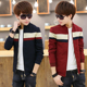秋季青少年夹克男装薄款韩版纯棉休闲条纹立领上衣学生修身外套潮