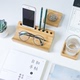竹木质办公室桌桌面收纳盒 创意时尚文具整理手机托 名片架笔筒座