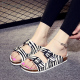 印花软木拖鞋女鞋夏天沙滩时尚一字拖凉鞋斑马纹韩版平底大码休闲