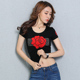 2017夏季新款玫瑰花镶钻体恤短袖T恤女烫钻印花汗衫修身女装上衣