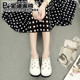 宝迪美崎2017春夏新款平底松糕底中跟厚底休闲舒适女单鞋大码真皮