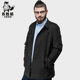 百胜狐大码男装春季时尚休闲连帽风衣男中长款夹克加肥加大潮外套