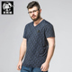 百胜狐夏季胖子短袖T恤男v领宽松大码男装超大肥佬半袖印花体恤衫