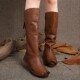 2016秋新款真皮低跟软底女靴手工复古高筒长靴头层牛皮女单靴倒靴