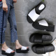 懒人鞋春秋女2017新款真皮百搭内增高韩版厚底镂空单鞋一脚蹬女鞋