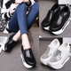 内增高女鞋春秋2017新款百搭真皮显瘦坡跟韩版双拉链运动休闲单鞋