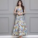 夏季新款大摆印花连衣裙夏女碎花圆领中长款修身系带无袖沙滩裙子