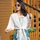 夏季新款沙滩雪纺开衫短款七分袖小外套大码宽松系带纯色雪纺衫