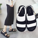 JPAI2017夏季新款韩版一字型方头拖鞋女平底平跟方扣百搭懒人凉拖