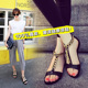 JPAI2017春夏韩版新款漆皮包头半拖鞋女高跟粗跟水钻链条时尚凉拖