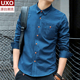UXO春季长袖衬衫男韩版修身型薄款青少年纯棉男装大码学生衬衣
