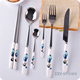 一家四口陶瓷大号勺子韩国餐具长柄调羹不锈钢饭小勺叉子筷子汤勺