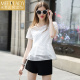 【宋佳明星同款】米莱达2017夏装新款 印花衬衣 白色短袖衬衫 女