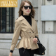 米莱达 2017春装新款女装 双排扣褶皱修身长袖外套纯色短款风衣女