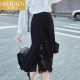 米莱达 2017春装新款女装 修身高腰裙子 蕾丝镂空开叉半身裙 女