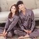 春夏季短袖长袖男女士冰丝质睡衣情侣夏季仿真丝绸睡衣套装家居服