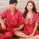 秋季新婚大红情侣丝质睡衣 喜庆结婚男女士家居服短袖冰丝绸套装