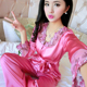 春秋款长袖薄款丝质睡衣女士夏季性感女丝绸两件套家居服加大码