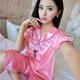 2017春夏季短袖女士丝质睡衣女两件套丝绸冰丝绸套装加大码家居服