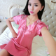 新款夏季冰丝V领诱惑吊带睡裙短袖女士性感蕾丝绸睡衣单件裙包邮