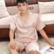 男士睡衣春夏季短袖仿真丝绸睡衣中裤男式薄款V领家居服套装包邮