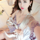 2017新款女士睡衣春季长袖仿真丝绸吊带裙性感两件套浴袍夏家居服
