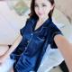 韩版春秋夏季女士短袖短裤真丝丝绸睡衣套装女翻领性感休闲家居服