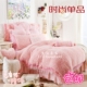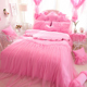 韩版全棉梦幻粉红公主风系列可爱蕾丝花边婚庆床裙床上用品四件套