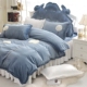 ins韩式公主风花边春夏全棉蝴蝶结灰色床裙式四件套1.5/1.8m床品
