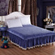 纯色水晶超柔绗绣床裙加厚夹棉床罩 蕾丝全棉素色韩版 特价包邮