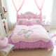 韩版公主风床裙式蕾丝全棉四件套纯棉粉色女孩儿童卡通1.5/1.8m床