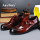 欧美秋季新款商务正装皮鞋真皮男鞋圆头系带鳄鱼纹工装鞋头层牛皮
