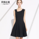 Angusman新款女装个性不规则领口连衣裙 中长款黑本风小黑裙
