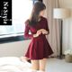 NE赫本小黑裙欧洲站A型冬裙长袖打底裙显瘦修身红色连衣裙秋冬季