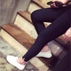 胖mm外穿显瘦小脚九分裤春秋200斤女韩版大码弹力学生黑色打底裤