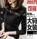 春装新款韩版胖MM拼接网纱长袖t恤200斤加肥加大码打底衫上衣女潮