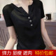 胖mm加肥加大码女装夏装新款韩版宽松短袖V领t恤网纱弹力显瘦上衣
